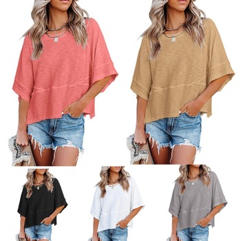 Hot Bán Mới Khâu Màu Rắn Vòng Cổ Của Phụ Nữ Mặc Ghép Rắn Màu Bùng Tay Áo Giản Dị Lỏng T-Shirt Hàng Đầu